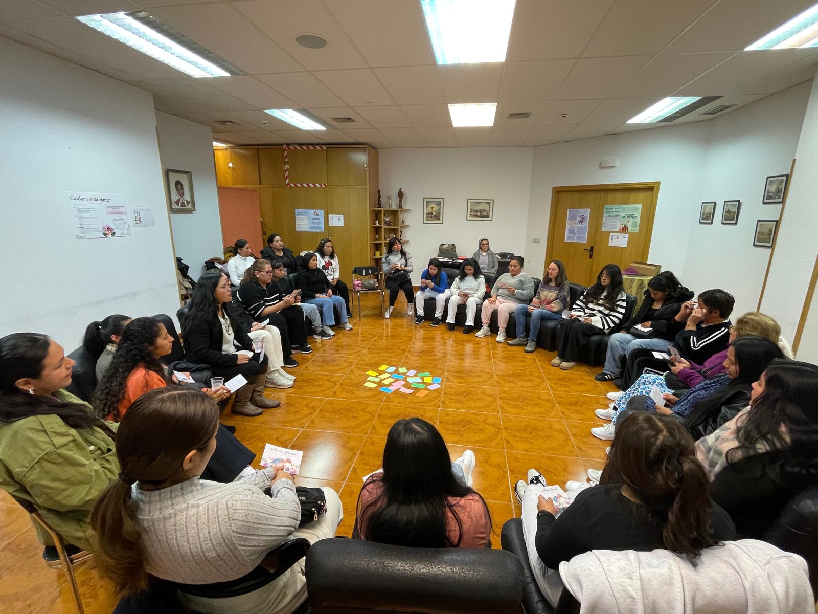 El sábado 22 de noviembre de 2025 tuvo lugar en la Casa Madre un taller sobre la experiencia emocional de mujeres migrantes empleadas de hogar, organizado por la Fundación Manuel María Vicuña. Este encuentro se enmarcó en una investigación sobre la experiencia emocional de las mujeres migrantes en el empleo de hogar y los cuidados, desarrollada en colaboración con la Fundación. En total participaron 26 mujeres y algunas de las participantes habían colaborado previamente en la investigación mediante entrevistas en profundidad o grupos de discusión, mientras que otras podían reconocerse en los resultados presentados.