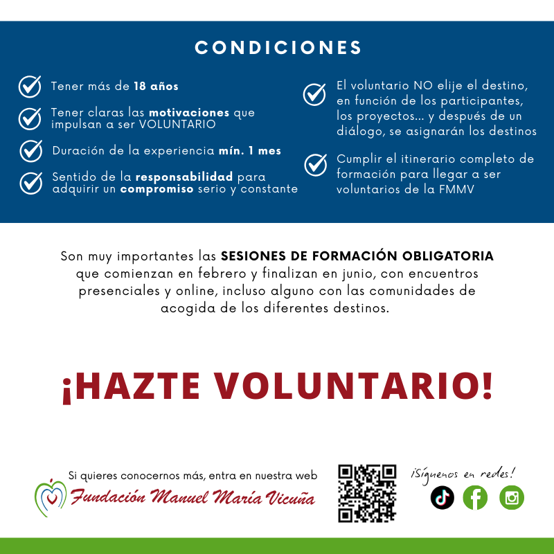 El voluntariado no es solo una actividad; es una forma de vida que transforma tanto a quienes reciben el apoyo como a quienes lo ofrecen. En FMMV, creemos firmemente que cada acto de solidaridad tiene el potencial de generar un impacto duradero. Si estás buscando una manera de salir de tu zona de confort, enfrentarte a nuevos desafíos, desarrollar habilidades que te ayudarán en tu vida diaria y profesional y contribuir a un mundo más justo, ¡el voluntariado es tu oportunidad! te verás impulsado/a a descubrir nuevas facetas de ti mismo/a.